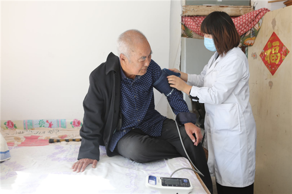 针对不便来到现场的90余岁的高龄老人,王卫护士长、治疗师卫玲玲和郎子娟又马不停蹄地来到老人的家中,为老人进行身体检查,进行健康指导。