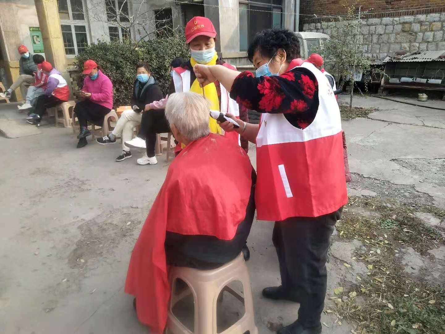在排队等候时,志愿者们为老人理发。哪里需要我们,哪里就有志愿者们的身影。