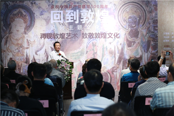 由李可染画院、中国留学人才发展基金会一带一路研究院、敦煌画院共同发起并主办的“庆祝中国共产党成立100周年——《回到敦煌》系列主题文化展”6月28日在北京李可染画院图形学美术馆开幕。