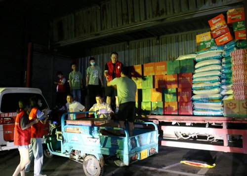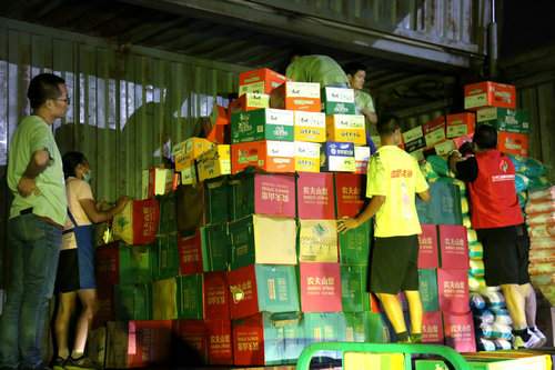 2021年8月9日晚8点,北京公益服务发展促进会、北京市海淀区智慧社区发展中心、北京物流与供应链管理协会、联想公益基金会、beplay app下载 等多家社会组织、爱心企业的志愿者50余人参与捐赠物资的清点、打包、搬运工作。至凌晨2两点完成全部52吨物资装车工作。市场的工作人员在得知爱心物资是支持河南灾后重建后,主动为我们打开了市场的高功率照明灯,很多商户也自发的投身到爱心物资的装车行动中来。