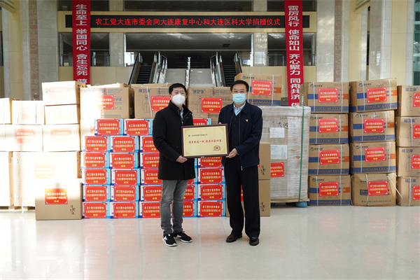 12月1日,农工党大连市委会在大连医科大学附属三院(大连康复中心)门诊大厅举行捐赠仪式,市农工党通过市青基会,向大连医科大学及大连康复中心捐赠价值150余万元的防疫物资。本次捐赠活动,由农工党大连市委会和市青少年发展基金会联合主办,农工党中山区基层委员会和沙河口区基层委员会联合承办。