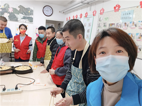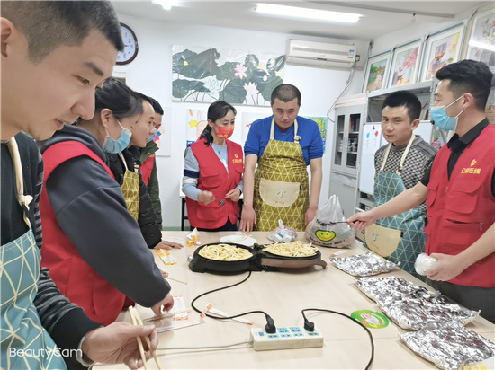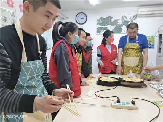 接下来是“孩子们”最期待的也是最喜欢的美食环节,煎薯条、洋葱圈儿。虽然“孩子们”表现出迫不及待的想要吃,但是中心多年培养出来的秩序感,使这群“孩子们”有序的完成了整个煎烤过程。