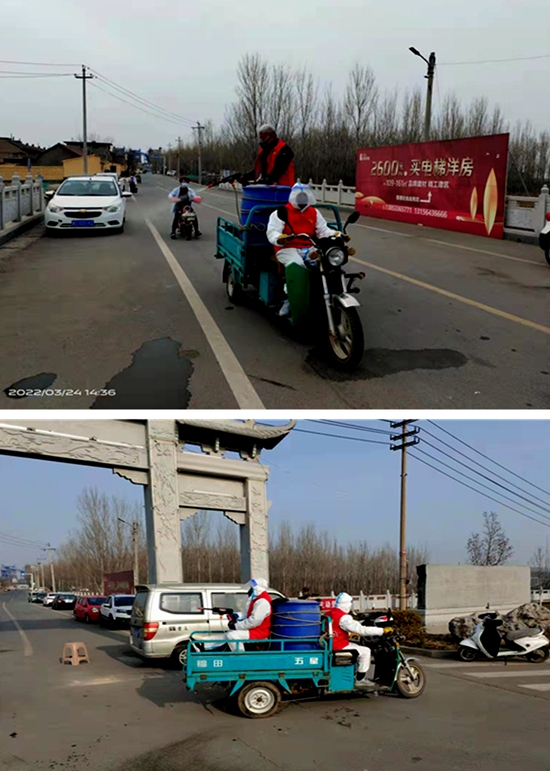 村民王士滨,王加军义务出车,出设备全村消毒,村民学习榜样