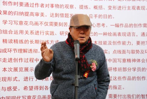 中国国家画院研究员、著名大写意花鸟画家邢少臣先生致词