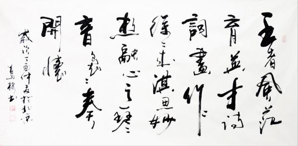 书画同源,在中国书画中,这两门艺术是相通的。中国书画史上,很多大家都是书画兼擅的。我是书画都很喜欢,写写字,画些画,一方面是修身养性,一方面也是互补,各方面的休养都需要。特别是书与画,结合得更近。我是以书入画,以画入书。总是写字,画意感不想,需要通过研习画来增强书写中的画意。通过以书入画,强调画画中的书写感觉。我国古代大家在画画最后的落款都是某某写,很少写某某画。这就是中国文人画的显著特征。就是写的意识在画里面,使画更有看头,更有品味的成分。书法中,没有画的意境,只是单调的线条,很难写出精彩。我是通过书画兼修,尝试达到这两种艺术的结合。
