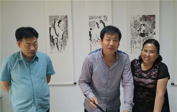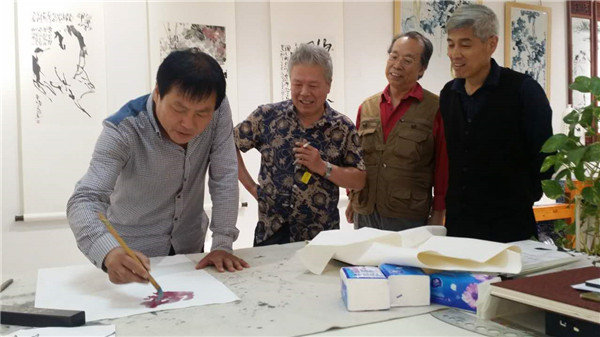 从左至右画家高峰、画家吴江宁、画家范有祥、画家刘文远
