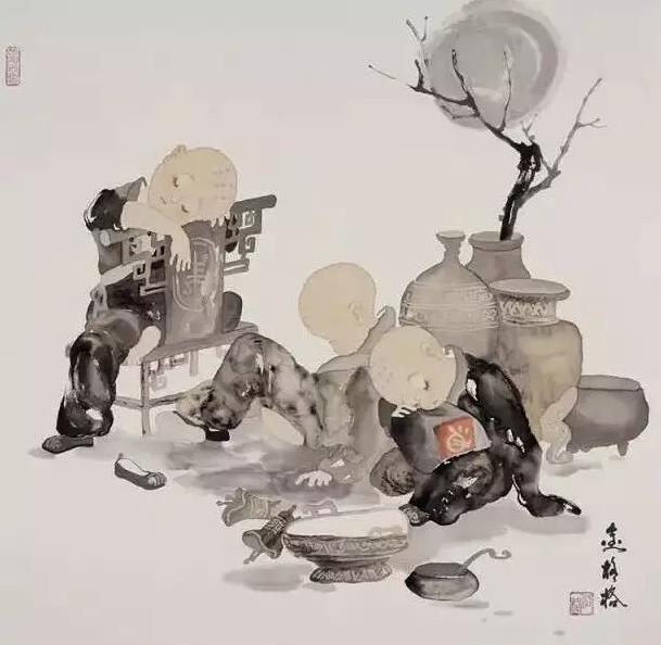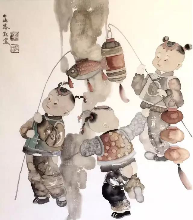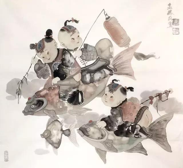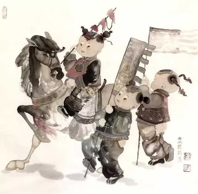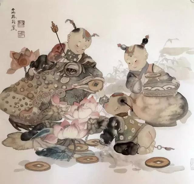 人物描绘运用彩墨没骨画法,国画技法中揉入油画技法,充分利用生宣渗化自然的特性,泼彩破墨,枯、湿、浓、淡、焦,控制水墨效果游刃有余;没骨虽多勾线少,勾线贵能锥划沙,几笔线条,钢筋铁骨、力透纸背,把谢赫"六法"中的"气韵生动""骨法用笔"挥洒得淋漓尽致!书画同源,诗书画印相辅相成,相得益彰,国画离不开书法的题跋,汉画配汉简书法,古朴典雅,灵活、潇洒、飘逸。国画风格比之油画,妖气渐化,修炼参悟、得道成仙,书卷气渐浓,潇洒出尘。格格新汉画深得王阔海先生之精髓,谙得个中三眛! 艺海无涯,道法自然,艺术至始至终很少有人能达到理想中最高境界!只是尽力而已,顺其自然,抛却功名利禄,功夫在诗外、在书外、在画外。欲使书画更上层楼,唯有多读书,用知识、阅历、生活丰富头脑,四分读书,三分书法三分画。