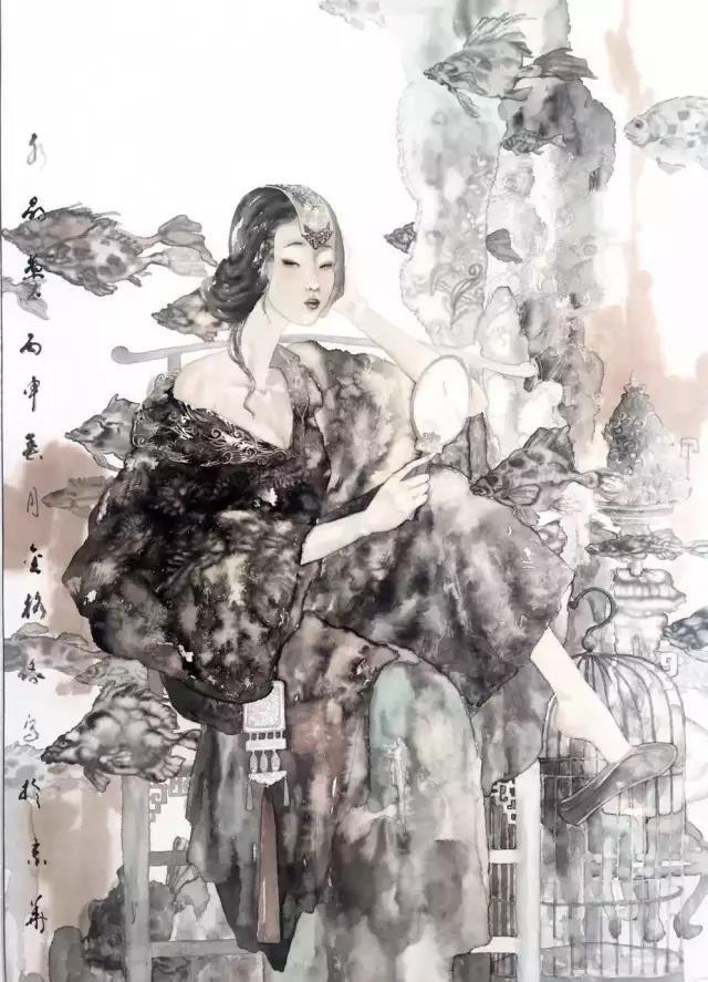 品读格格人物画作,无论是国画还是油画,仿佛自远古而来,生活于现今繁华中,世说新语,风情卓约,融透古今,婉言细语,心绪流露,古也?今也?作者把自己融入其中,是我也?非我也?正如世人所云"画如其人是也"。画家把心中的情感,通过笔墨色彩,渲泄到作品当中,有意无意之间,古人即我!我即古人!一幅幅古装仕女图,端庄娟秀,轻移莲步,欲语含羞,雍容华贵,细看容妆,似画家本人写真,是也?非也?观者各有所感。