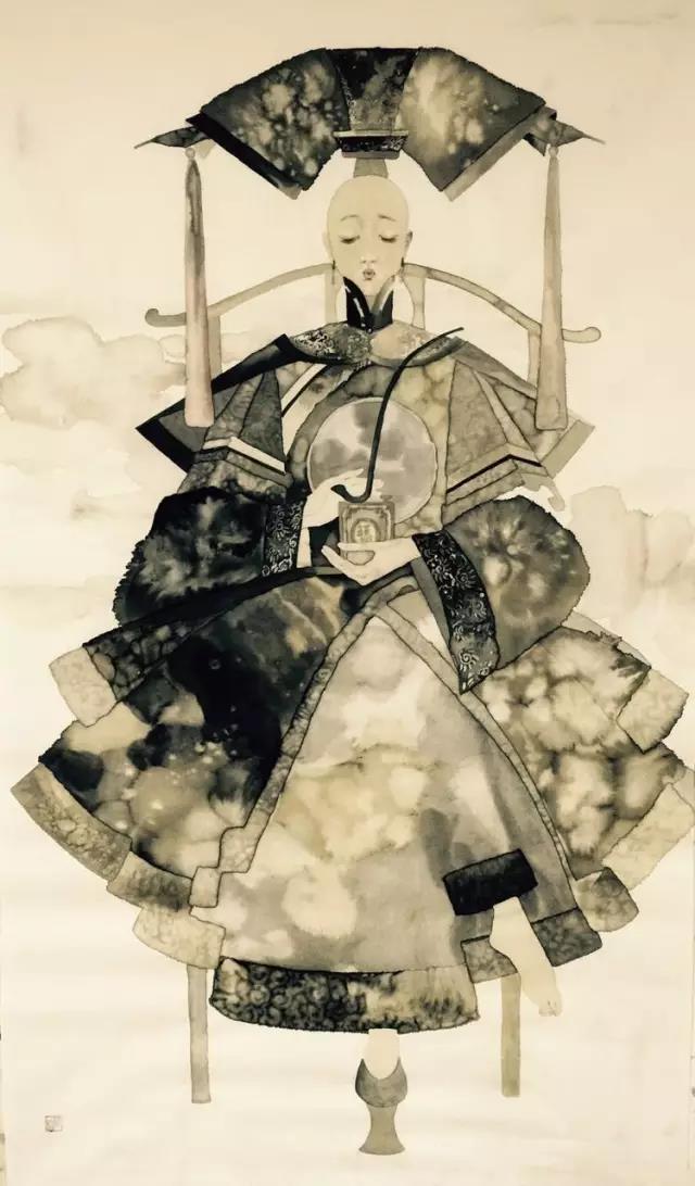 格格属于正宗绘画科班出身,受过严格、系统、规范的艺术教育,功底扎实,山水、花鸟、人物、素描、油画,涉猎广泛,尤精于国画人物没骨仕女。观格格之油画,画风诡异,妖气十足,色调梦幻而浪漫,空间深邃而空灵,画法古怪而狂野,章法构图源于国画,油画技法中揉入国画技法,风格前卫而独特,画面荒诞而素雅,意境虚幻而幽韵,画中人似聊斋中蒲翁笔下之灵狐野精之再现,人也?鬼也?妖也?怪也?似真似假?如梦如幻?令人感叹!引人遐思!令人神往而欲寻之......欣赏格格之新汉画国画,色调古雅而韵致,墨彩淋漓而润泽,构图简约而充实,布局传统而出新意,空间充分运用计白当黑、虚实相生,画幅空灵而不繁琐。