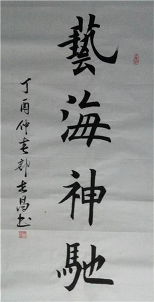 郭世昌,1947年, 别号,夕阳山人,现居廊坊,原藉甘肃通渭人,现为中国书画艺术发展研究会理事。自幼喜爱医学和书画,毕业后投入卫生事业几十年,利用工作闲暇之余习帖不停,书法创作。其书法特点,常以雄强、洒脱、俊逸见长,气势恢宏间不失隽逸娟秀。他以意写书,张弛有序,字的结体和章法富有创造性。同时还十分注重书法内容与形式的和谐统一,以及书法创作中内在精神情趣的表达——写榜书力求厚重,写警句力求有力,写诗歌力求从容,写名言力求雄浑,写对联力求呼应,写文论力求清明……字字表现出“气韵生动”。所谓的“气韵生动”,按元•杨维桢的说法是“传神者,气韵生动也”,就是“以形传神”,如此才能“夺造化之机”。 他的刻苦用功是人所共知的。虽年过花甲,却身体康健,精神矍铄,加之对书法艺术的酷爱,每每写起字来,废寝忘食、不知疲倦,两天写上一刀纸的事也是时有发生。如此勤奋,让人敬佩不已,也让好多年轻人自愧不如。 直至2016年开始参加书画比赛,曾获得奖项有:2016年东方美全国诗联银奖;纪念中韩艺术交流展金奖;2016羲之杯全国书画展优秀奖;2016端午知情共筑中国梦全国书画展一等奖;少林寺建寺1520周年收藏证;首届中粮长城杯荣誉证。