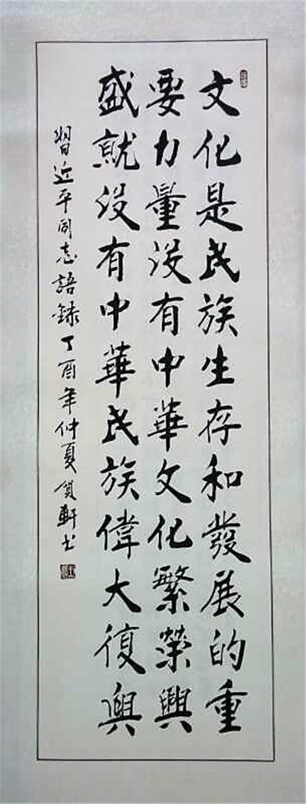 王贺轩,2016年6月在红色延安成功举办了以“铭记历史,不忘初心”的书法展。2016年10月在北京又成功的举办了“纪念周恩来逝世40周年”书法展。受到各界人氏的高度评价。现为北京宣和书画艺术研究院副院长,中国红色记忆书画创作中心首席书法家,河北唐山景山书画院院长,北京沫若书画院常务院长,冀东书画院名誉院长。书著出版有《大楷毛泽东诗词》《王贺轩书法作品集》《人民艺术家红色直罗书法作品集》。