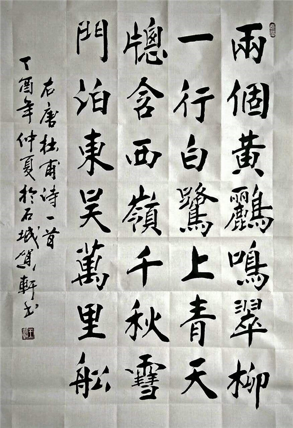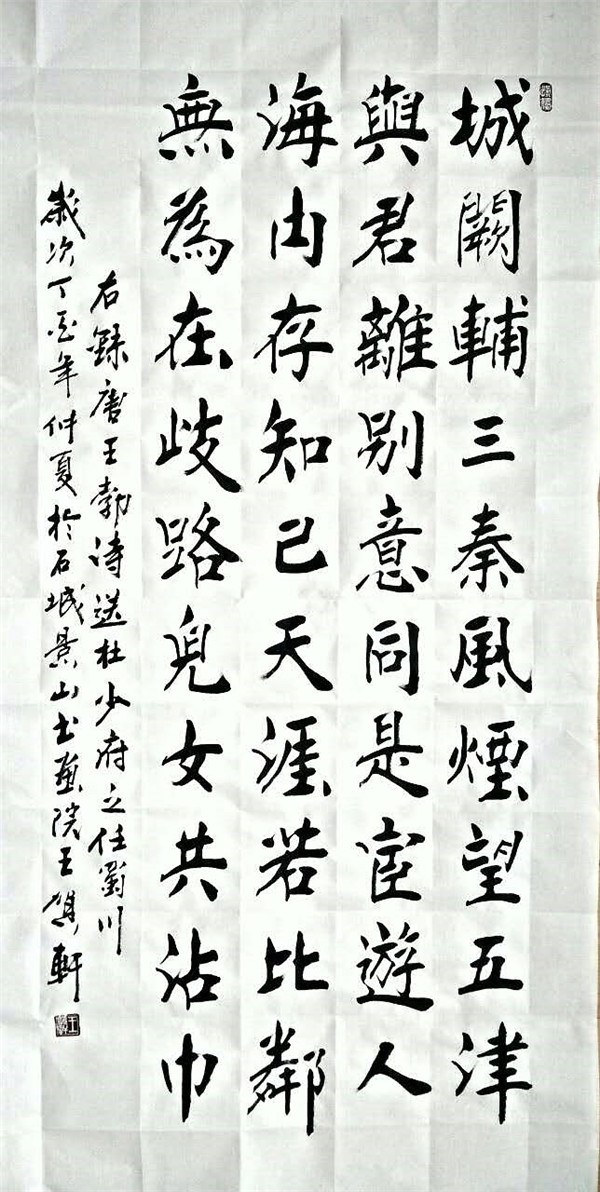 王贺轩,别名,贺轩,1955.6.21生于唐山,汉族,大专文化,职业书法家。1974年11月应征入伍,7年的部队生活,让他迷恋上了书法。退伍后,王贺轩老师不管从事任何工作学习书法从未间断。30年如一日,从唐楷,北碑,乃至近代碑帖无不临习,进而形成了“楷情碑韵”书写风格。也曾为三十多年习字赋诗:卅年笔墨不足道,冷纸生辉乃初成。万毫齐力凝心底,悲喜情愁点画中。