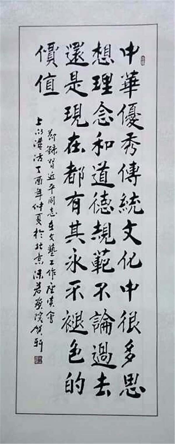 作为一名书法家,王贺轩认为书法艺术的展现,特色是首要的。而特色又来自深厚的传统功底。没有特色的传统功底它不是艺术,没有传统功底的特色更不是艺术。