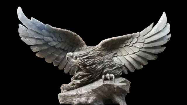 雄鹰木雕制作的十分精巧,每个部位都制作的相当清晰,长约8厘米,宽约6厘米,高约10厘米,虽然小,但却相当有威严。它的头部是棕色的。嘴巴呈钩状,嘴尖异常尖锐,仿佛一摸就会流出鲜血来,嘴旁的两个呼吸孔清晰可见,眼睛炯炯有神,仿佛正盯着猎物,十分精致。它的身体是弯曲的,身上羽毛的纹路是呈竖条状。翅膀上约有10根羽毛,羽毛有长有短,居中间的更长,羽毛也是弯曲的,仿佛它正要起飞,在蓝天上展翅翱翔。 尾部呈扇子状,条纹清晰,爪子是棕黑色,十分尖利,立在底座上。 木雕整体有一种木头的清香,闻起来很舒服。每个部位都做得十分清晰,可见制作者的技艺十分奇妙精巧。