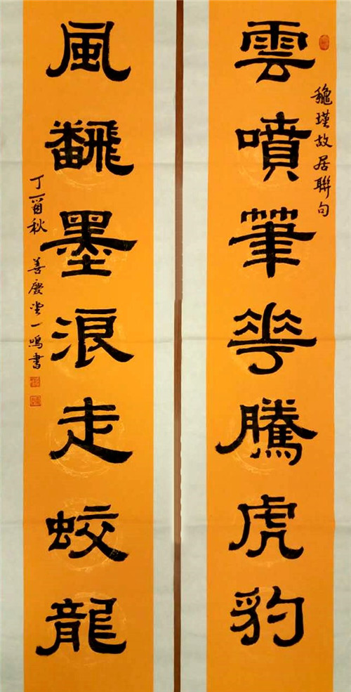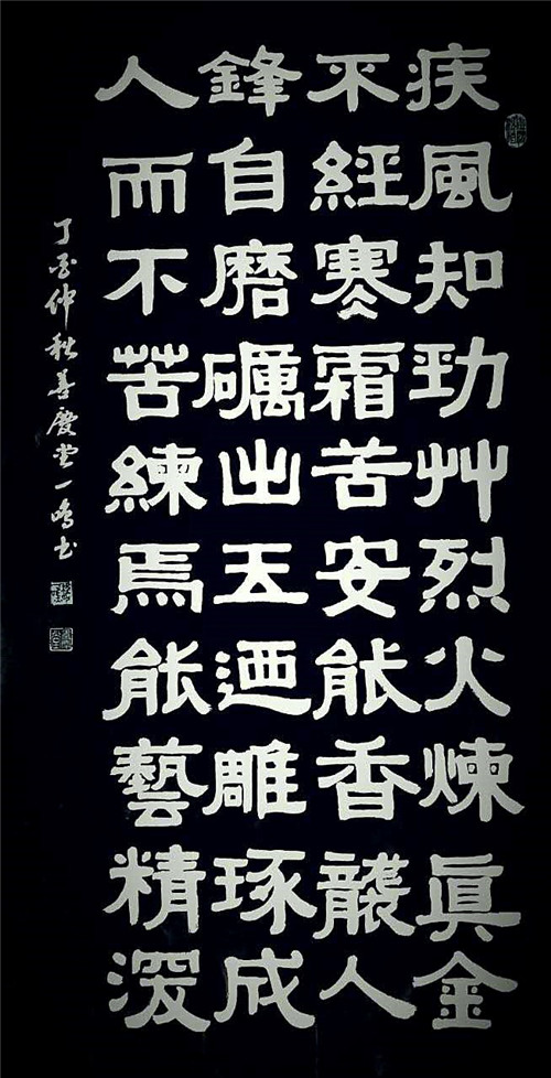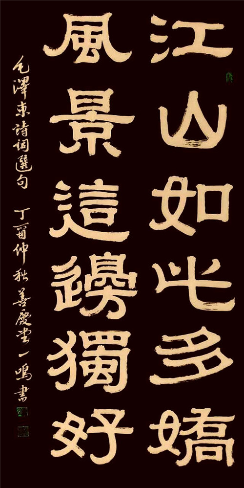 程一鸣,男,现年六十,善庆堂堂主,祖籍安徽黄山,大学文化。自幼受家庭熏陶,临池不缀,专攻汉隶,为隶书之祖程邈的同根之后。现为上海市文联中西融合美术协会会员,黄浦区书法家协会会员,上海市东方书画院画师。书法作品曾获2016年“江山颂”全国诗书画印大赛书法一等奖、中国书画八十年鉴“金奖"、纪念第八届“祖国好”华语文学艺术大赛金奖、2016年全国诗书画家创作年会“特等奖”、2017全国第五届“中国梦想杯”书画大赛金奖、中国书画网络电视台“庆祝建军90周年全国书法美术作品展”荣获金奖、2017年入选“美国邮票”,被美国集邮集团评为“美中杰出艺术名家”、2017年书法作品荣登中国邮票邮册,其书法作品多次入选全国、省市书画展览并屡次获奖。