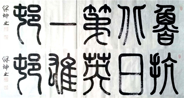 2017年2月小篆书法“南皮榜书,名扬世界”入选京冀鲁豫十八县市邀请展并出版在《擘窠艺术》集;