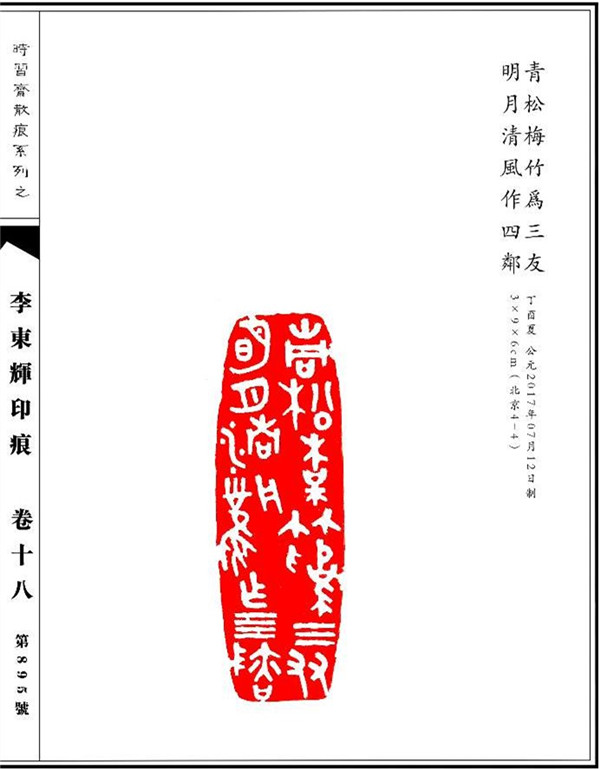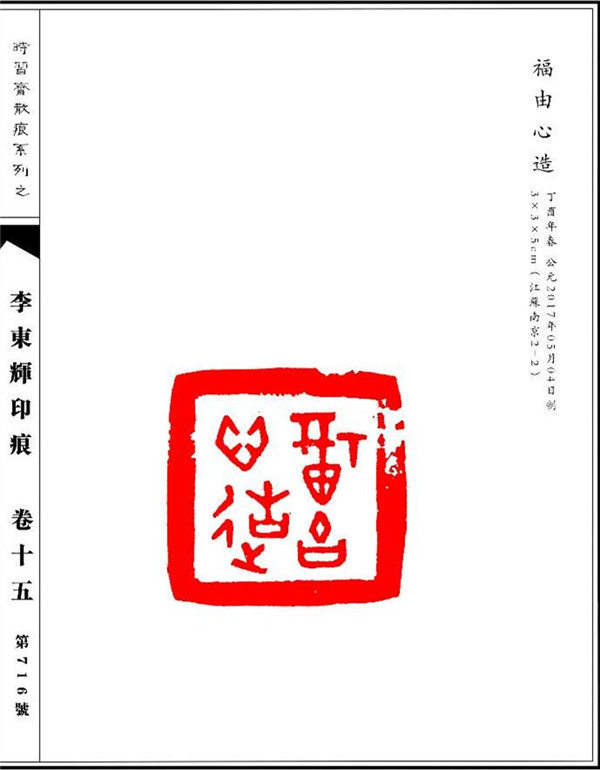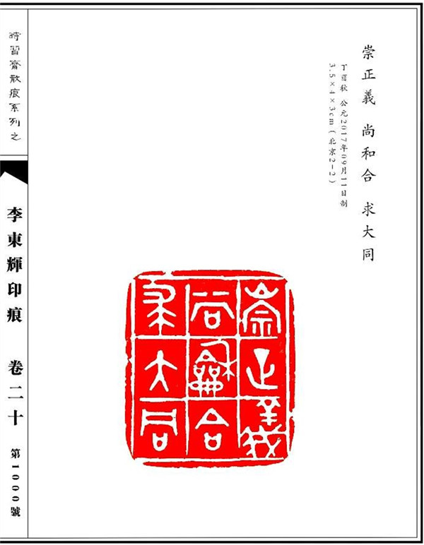 李东辉常说,书法和篆刻其实是一回事,都是章法、字法、笔法。一方印章,方寸之间表现了作者对整体章法的审美取向和追求、对字法的通晓程度以及对书法线条的理解。创作一幅作品,首先要把字写对,这就需要小学和古文字学的基础,知道一个字的本字造字原理以及它的演变过程,在这个基础上再根据自己的审美来进行创作,才能够“从心所欲不逾矩”。不然就会以讹传讹,“关公战秦琼”。他深知,要想在书法、篆刻方面取得成就,“文字”这一关是不可逾越的。因此多年来潜心研读段注《说文解字》和《古文字诂林》,为李东辉书法、篆刻艺术的发展打下了扎实的基础。