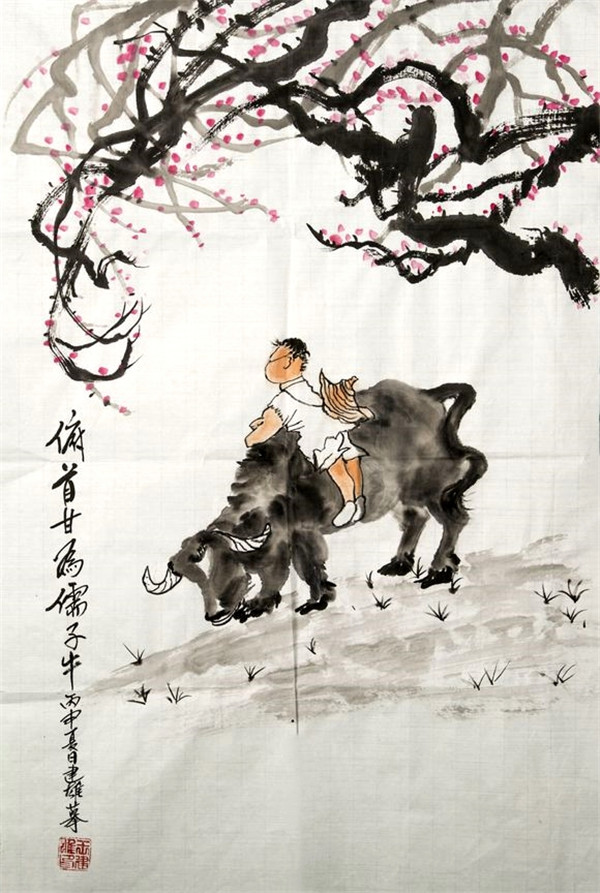 王建雄:男,汉族,1953年生于中国山东庆云,号吉祥斋主,德州市书法协会会员,德州市美术协会会员,自幼爱好书画,少年时期善于临摹名人字画,青年时期精于木工雕刻,晚年接受书画系统性培训,不断学习,精益求精。绘画方面精于国画山水、人物;作品有浓郁的乡土气息和情趣,具有自然、淳朴、宁静、祥和、叙情、细腻、隽永、灵巧的艺术风格;经过十几年如一日的潜心塑造,他笔下的山水人物,已经不是表象的概念化的模式,而是有生命力的形象。他让自然人性化,人物自然化。山水林木、飞禽家畜都有生机、有灵性;人物都有灵魂、有个性,千姿百态。构成了意境美妙、有情有趣的画面。人物虽小但传神,起到了画龙点睛的主角作用,决定着作品的情节、气氛、基调,而其他景物、造型神态经及笔墨、构图、题识等都围绕着人物的基调而变化。