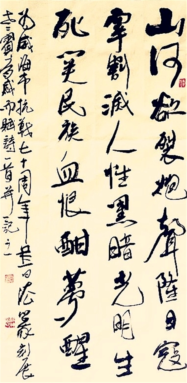 梁嗣斌:艺名老宾,字,兴子、石之,号,百园堂、玩石阁,1951年出生于山东威海。毕业于山东大学、中国书画函授大学、中国人民大学中国山水画硕士研究生。曾经受教于欧阳中石、李宝林、王振中、李兆彩、王振军等先生,师承、黄宾虹、李可染、欧阳中石,拜师入室于李宝林、王振中、李兆彩、王振军门下,传承李派山水(李可染),李派花鸟(李苦禅),传统人物李兆彩,毛体书法研究王振军。现为中国当代诗书画印艺术名家,中国当代艺术协会主席,中国人民大学访问学者,中国书法家协会会员,中国美术家协会山东会员,中国诗歌学会会员,山东曲阜师范大学美术学院客座教授,国家一级美术师,威海卫印社社长,威海兴子美术馆馆长,威海市政协书画联谊会理事,威海市诗歌协会顾问。作品多次参展中国书协、中国美协举办的国展并获奖,作品多次被政府有关领导以礼品赠送国际友人和友好交流,多次举办诗书画印个展,2009年曾两次在中国国家画院举办师生联展,在中国政协礼堂参展中国美协举办的中国画画中国国展,2014年获中国美协精致立场全国二届工笔画美展优秀奖,2014入展中国美协万年浦江全国美展,2015年入展中国美协徐悲鸿精神 全国美展。入展中国书协第一届秦皇岛之夏全国书法展,入展中国书协全国第五届篆刻展,入展中国书协全国第五届新人新作展。出版多种版本梁嗣斌诗书画印作品集。刊登各种刊物书籍三十余部,执着从艺40余年,其书法作品风格独特,力透纸背,自成一体。篆刻入展全国第五届篆刻展,其印风注重流行印风,随机生发,取之大美。其山水画作品线条流畅,浑厚华滋,具有浓厚的李派山水风范。其花鸟画用笔大气,水墨味足,具有李苦禅大师遗风,发表抒情题画诗八百余首。诗书画印涉猎具深。与宜兴市陶人葛紫砂陶艺研究所,著名紫砂大师葛军共同打造的福满神州紫砂壶被2008年奥运会北京奥委会收藏。人生格言获中外哲理名言金奖,并入编中外哲理名言大辞典。