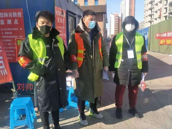 志愿者刘帅:当1月27日得知所在社区主干道设置检测点紧张抗疫情况后,他毅然放弃与家人团聚的宝贵时光,勇敢选择有被感染风险的逆行,主动请缨走出家门,义务为社区值守卡点,对来往人员不厌其烦的测试体温、详细登记、严格排查来往行人车辆;不管刮风下雨,始终坚守一线,一站就是一天,饿了匆忙吃口泡面,冷了就简单热水袋取暖,连续8天平均工作都12小时以上!还自掏腰包5400元,捐赠18件厚厚的棉大衣,为寒冷雪天值守人员送上暖暖呵护,大大缓解了社区抗疫燃眉之急!刘帅的志愿善举、爱心奉献让社区领导和居民非常感激,称赞他不愧为社区防控的一线英雄!