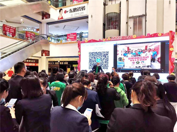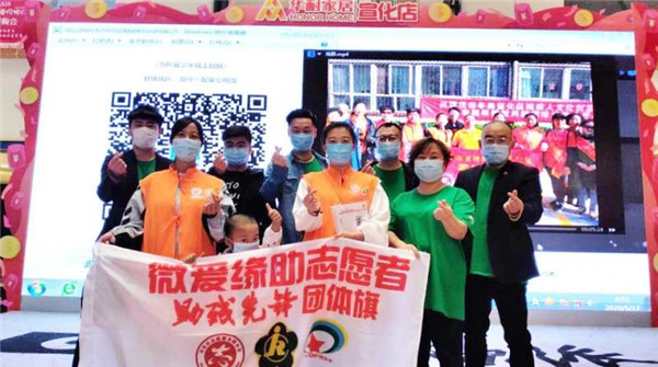 宣化区残疾人事业发展促进会志愿者张欣春特安排微爱缘助公益先锋队在华耐家具广场,组织参加“关爱守护折翼天使暖心行动”活动。此活动在众多爱心公益组织的助推下,通过电子屏播放折翼天使身残志坚永不放弃的真实事迹掀起众人对残疾人关心、关爱之热潮。这种宣传活动让更多的爱心人士涌跃加入到公益行动中,纷纷举起手机用支付宝扫向大屏幕上的助残慈善基金二维码;阳原县莲花堂公益队也应邀参加扫码助残活动;微不足道健康会馆线上扫码助残,众人拾柴火焰高,折翼天使圆梦近在咫尺!