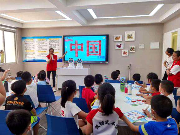 孩子们在家长的陪伴下,在老师的讲解下,了解红星红旗的由来、深入的认识和了解国旗的意义。AI机器人作为老师的“小分身”来到孩子的身边,协助孩子们答题数据的采集