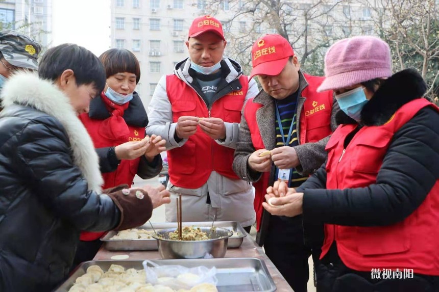 2020年12月21日,宛城区怡人敬老院飘出淡淡的饺子香,欢快的歌舞声、笑声和掌声汇成一道美丽的风景线。冬至来临之际,50余名志愿者走进敬老院开展了“冬至送温暖,爱心伴我行”活动,用实际行动践行初心和使命,让老人们感受到了浓浓的关怀和温暖。