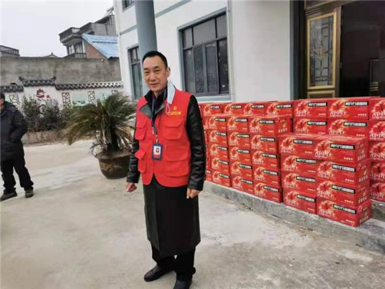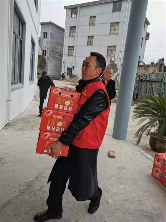 陈忠和介绍,这次的慰问品是阿克苏苹果,阿克苏是浙江对口援疆,中共天台县流动党员新疆支部委员会支持援疆买苹果,将来自几千里之外的爱心萍果带回故乡,既支援了新疆又温暖了家乡。
