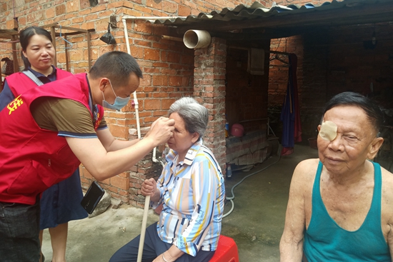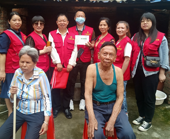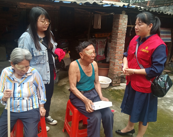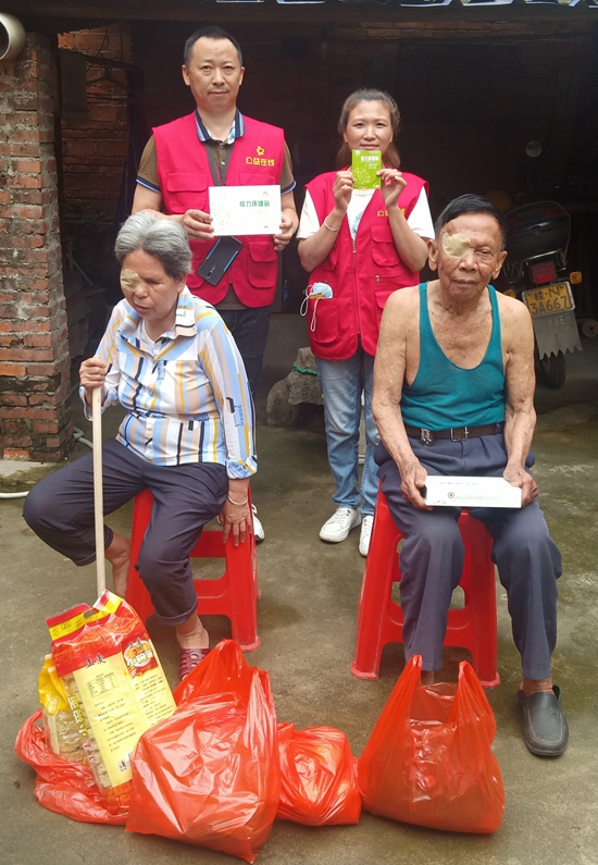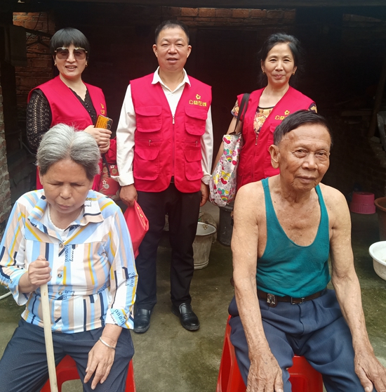 广西钦州市钦北区工作站站长胡建、办公室主任汤爱武、公益服务部部长冯爱英,组织大家去钦州市钦南区高岭社区看望高龄残疾老人:叶营典,男,1936年2月3日岀生,年老无业;凌桂珍,女,1956年5月10日出生,双眼视力残疾。