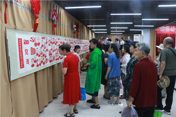 本次展览特地邀请了宣化区剪纸艺术家宋建国老师和他创作的十米长的建党百年人物剪纸进行展览
